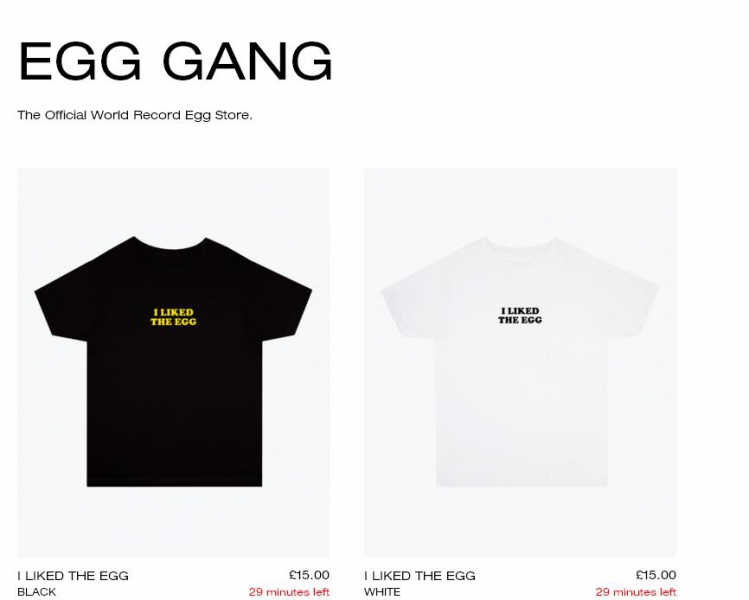 Тем временем в аккаунте world_record_egg, разместившем яйцо, появилась ссылка на сайт создателя акции. Им оказался британский интернет-магазин дизайнерских вещей Everpress, где можно заказать футболку с надписью «Я лайкнул яйцо» за 15 фунтов стерлингов.