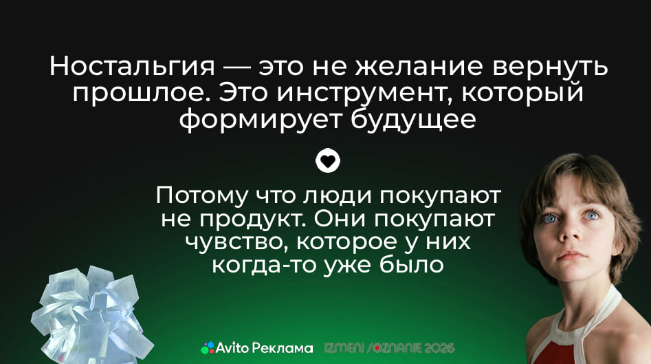 Когда говорят о ностальгии в маркетинге, обычно имеют в виду механики для привлечения внимания: советскую эстетику на упаковке, джингл из детства, ретро-шрифт. Но это лишь верхушка айсберга. Ностальгия работает не потому, что люди хотят назад в 90-е. Никто не хочет назад в 90-е.