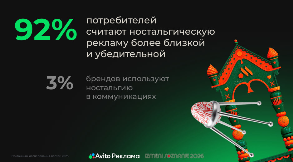 По данным исследования Kantar (2025), 92% потребителей считают ностальгическую рекламу более близкой и убедительной. При этом лишь 3% брендов целенаправленно используют ностальгию в своих коммуникациях.