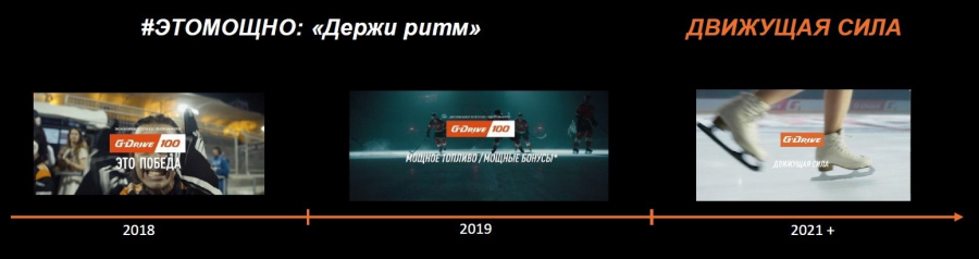 С 2018 года бренд G-Drive последовательно продвигался через спорт и связанные с ним яркие эмоции. Главный слоган бренда — «#это мощно» — акцентировал внимание на «драйве», «скорости» и «статусе» и формировал вокруг этих ценностей лояльный пул клиентов. Даже те, кто обычно предпочитал небрендированное топливо, покупали G-Drive время от времени, чтобы «побаловать автомобиль».
