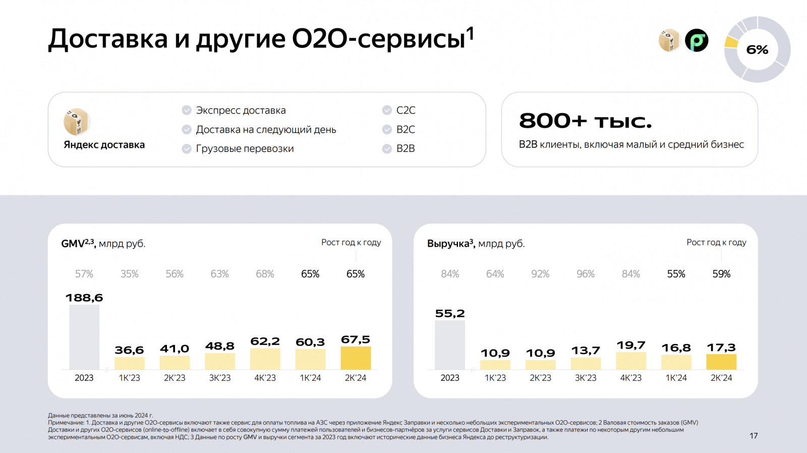 Выручка доставки и других O2O-сервисов выросла на 59% в годовом исчислении, в основном за счет роста «Яндекс Доставки».