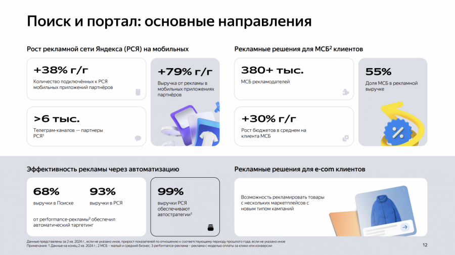 «Этот рост в основном обусловлен ростом поисковой доли, расширением рекламного инвентаря, в том числе на мобильных платформах, и повышением эффективности рекламных форматов за счет развития рекламных технологий», — указано в отчете.