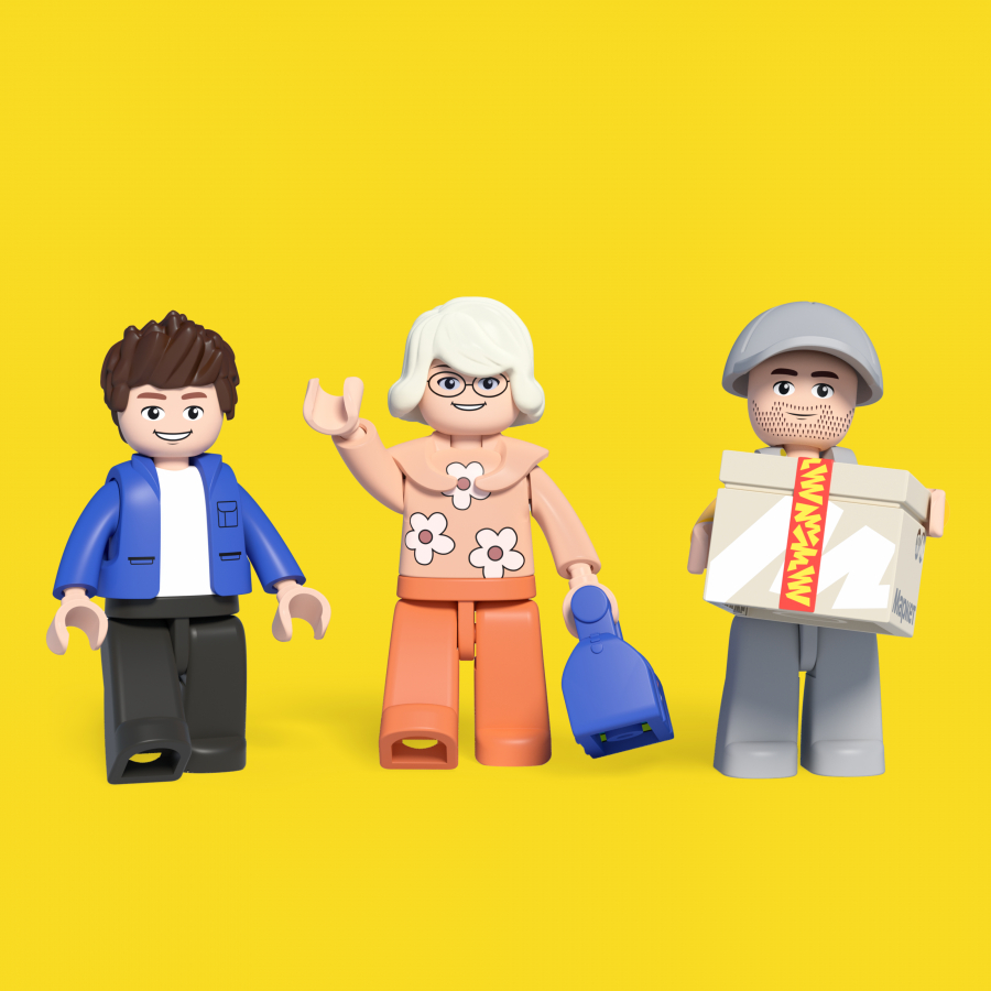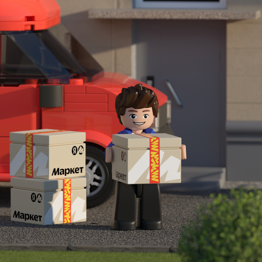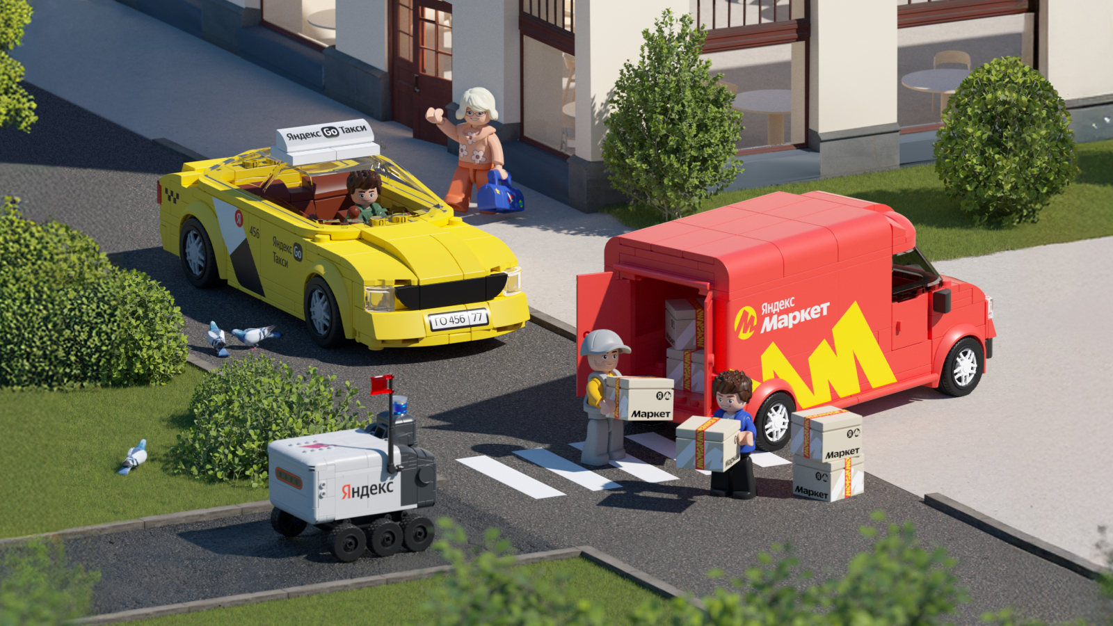 Первыми в линейке появились робот-доставщик, машина такси с фигурками водителя и пассажира, фура с грузчиком и покупателем. Конструкторы можно заказать на «Яндекс Маркете».