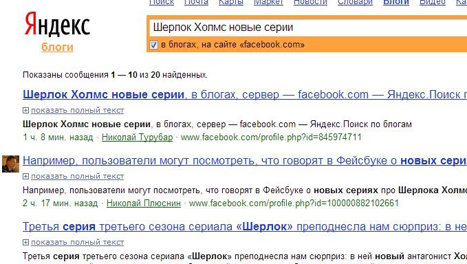 «Яндекс» заключил договор с Facebook, по которому получил полный доступ к публичным данным соцсети (firehose). Записи из Facebook уже можно найти в поиске по блогам, позже они появятся и в основном поиске на yandex.ru.