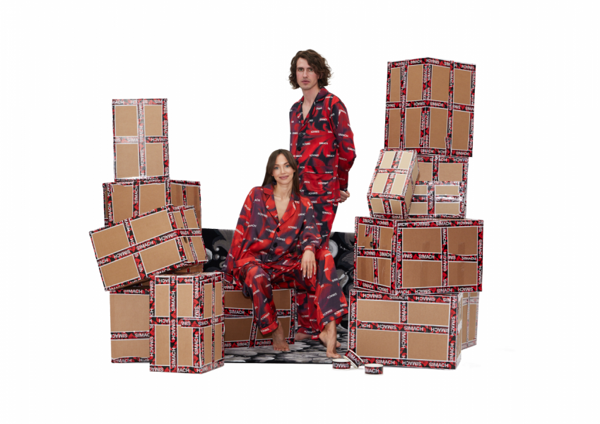 «Яндекс Доставка» выпустила лимитированный тираж пижам в коллаборации с дизайнером Денисом Симачёвым. Он разработал фасон пижамы и дизайн-паттерна, обыгрывающий цветочный принт в стиле хохломы. Также Симачёв отвечал за выбор материала для одежды и за пошив.