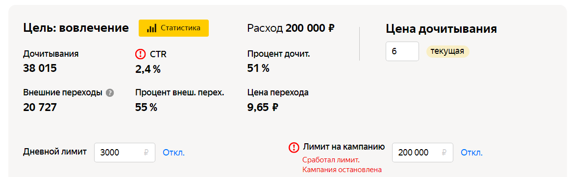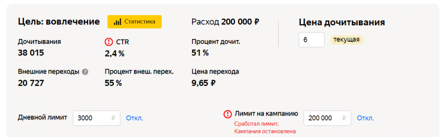 За два месяца рекламной кампании мы получили 38 тыс. дочитываний и 20,7 тыс. переходов. Это принесло хороший трафик на сайт, но мы не получили ни одной прямой продажи.