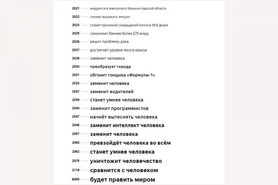 Опираясь на годы, которые указывают в заголовках, «Яндекс» составил план развития искусственного интеллекта вплоть до 6000 года.