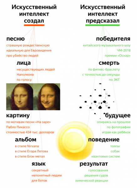 Большая часть заголовков рассказывает о том, как искусственный интеллект что-нибудь создал. Обычно это изображения, музыка, тексты или видео. Также ИИ нередко что-то определяет или диагностирует: например, рак. Еще он часто делает такие прогнозы, как исход спортивного состязания.