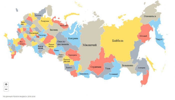 Поисковик сравнил слова из словаря Даля с теми, которые используют люди в своих запросах. На основе полученной информации «Яндекс» составил карту России, на которой для каждого региона показаны десять самых характерных слов из словаря Даля. Эти слова здесь искали намного чаще, чем в среднем по стране.