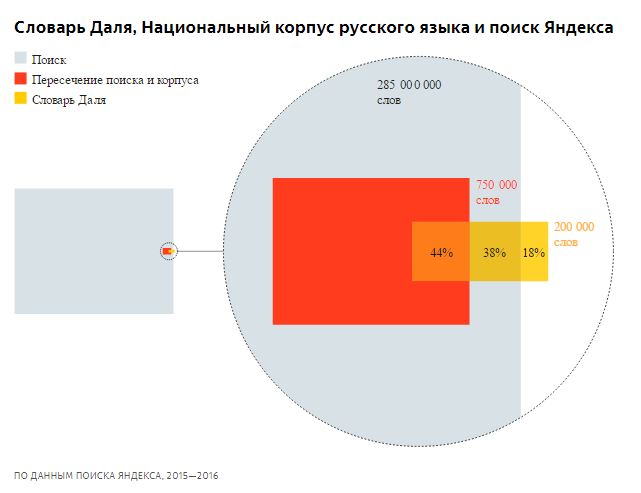 В «Яндексе» подчеркивают, что словарь Даля не является нормативным: его далеко не всегда можно использовать для ответа на вопросы «как пишется то или иное слово» и «что значит то или иное слово». Зато он представляет собой уникальный справочник по живому разговорному языку XIX века. Сравнив слова из словаря и из запросов, можно увидеть, что изменилось в языковой картине за 150 лет.