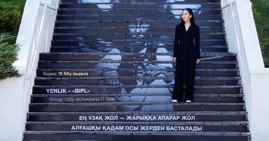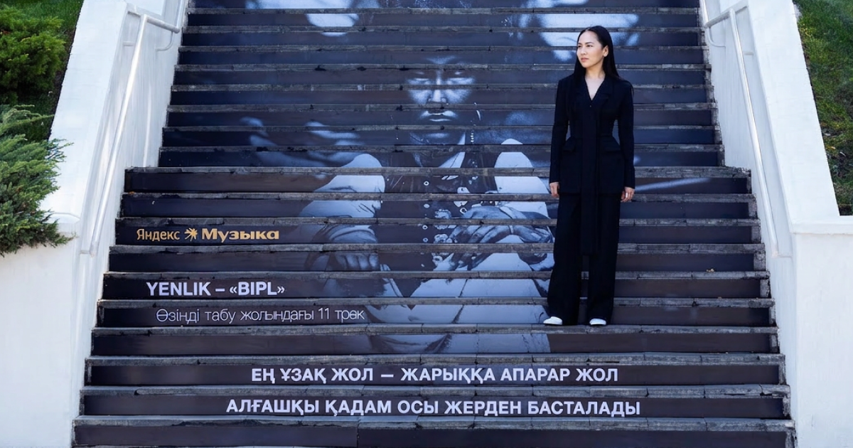 Чтобы закрепить присутствие в городе, мы с партнером выбрали культовую локацию Алматы — лестницу к смотровой площадке на холме Кок-Тобе. Весь альбом Yenlik пронизан темой самопознания и «пути к свету», и лестница, ведущая к смотровой площадке, стала для этого идеальной метафорой. На ступенях были нанесены строчки из альбома Bipl: «Самый долгий путь — путь к свету. Первый шаг начинается здесь».