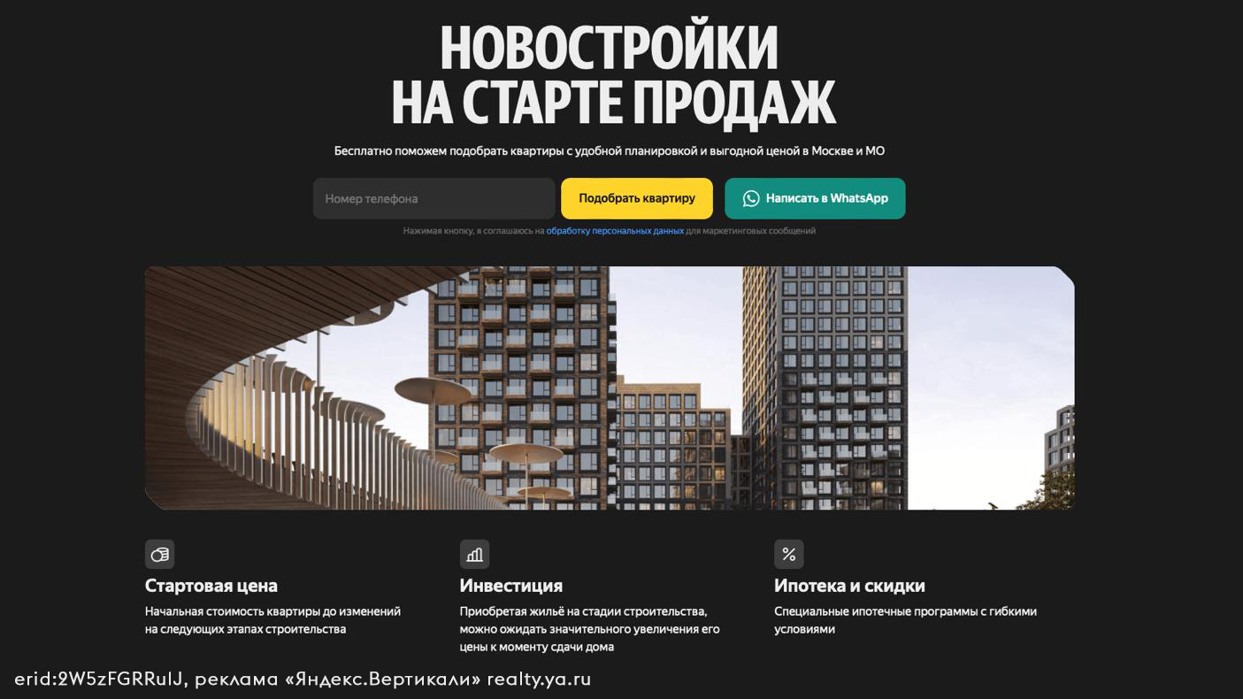 Сервис «Яндекс Недвижимость» запускает лендинг «Новостройки на старте продаж». В нем собраны предложения от девелоперов в проектах и новых очередях, только выходящих на рынок. Для пользователя «Новостройки на старте продаж» — это возможность приобретения квартиры по стартовой цене до изменений на следующих этапах строительства, а также возможность подобрать специальные программы и скидки с более интересными условиями.