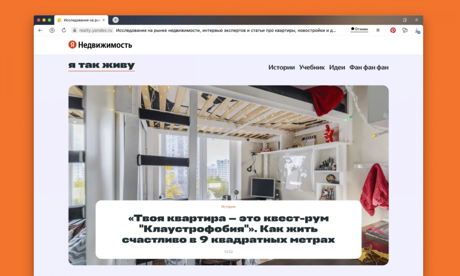 Сервис объявлений об аренде и продаже недвижимости «Яндекс.Недвижимость» запустил собственное медиа, которое называется «Я так живу», сообщили Sostav его представители. В онлайн-журнале можно прочитать реальные истории и полезные советы про съём, сдачу в аренду, покупку или обустройство жилья. Медиа создано совместно с командой сервиса «Яндекс.Аренда», говорится в сообщении. Его главным редактором стал Михаил Цымбал, шеф-редактором — Анна Устюжанинова, арт-директором — Владимир Куликов.
