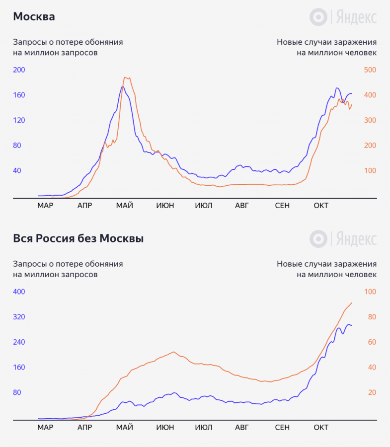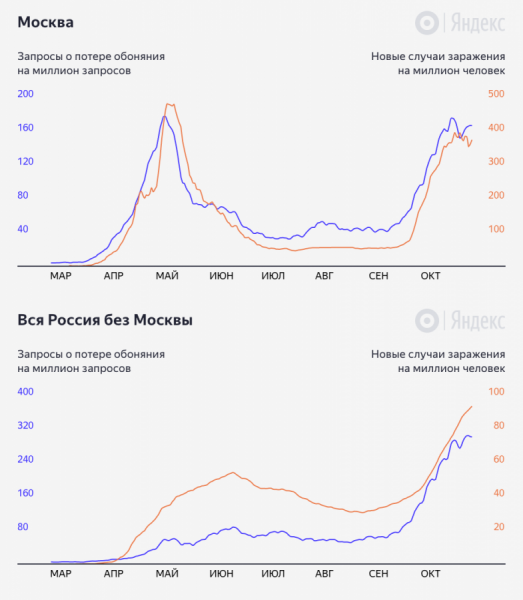 Связь между количеством запросов и заражений очень опосредованная, и судить по запросам о числе заболевших или динамике распространения вируса нужно с осторожностью, предупреждают в компании.