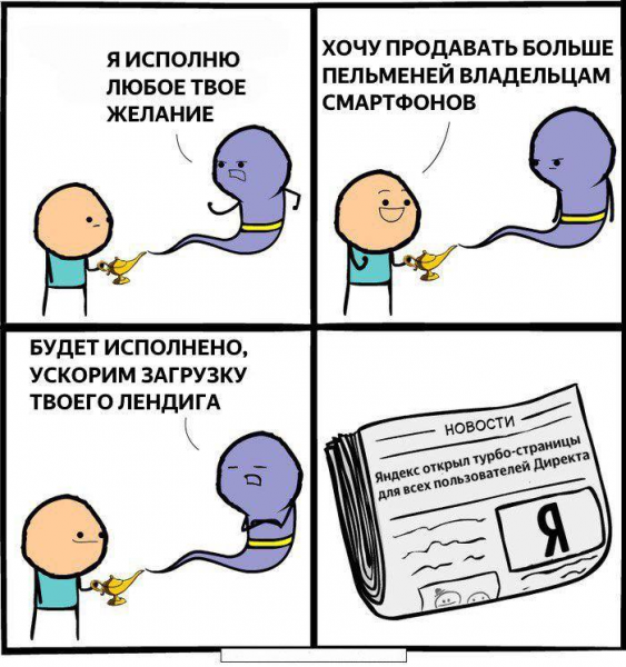 В «Яндексе» с юмором подошли к анонсу запуска турбо-страниц в «Директе», создав мем в честь этого события: