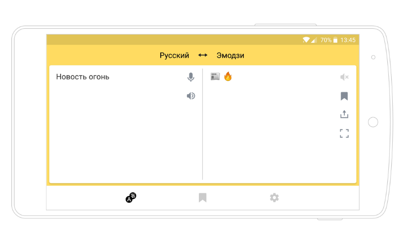 В «Яндекс.Переводчике» появилась поддержка эмодзи. Теперь перевести в картинки можно как отдельное слово, так и словосочетания или целые фразы. Понимание смысла позволяет сервису подбирать эмодзи-эквиваленты практически для любых понятий.
