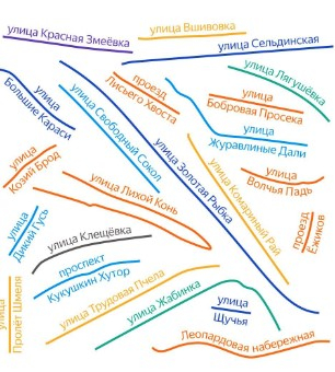 «Так, улица Чёрная Курья в Архангельске не имеет отношения к курам и, скорее всего, происходит от диалектного слова «курья», означающего залив или старое русло реки. Усть-Утка-Строй в посёлке Староуткинск Свердловской области происходит от гидронима Утка из мансийских или тюркских языков. Улица Семга в дагестанском селе Семгамахи не имеет никакого отношения к рыбе сёмге», — отметила она.