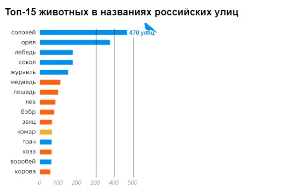 Также часто названия связаны с лошадьми, львами, бобрами и зайцами. Из насекомых в топ-15 животных вошли только комары.