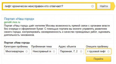 Московские пользователи смогут пожаловаться на городские проблемы через «Яндекс». Специальная форма будет появляться при запросах вроде «Плохо работает дворник». Благодаря виджету портала «Наш город» жалобу можно будет отправить, не заходя на сам сайт, сообщает M24.ru.