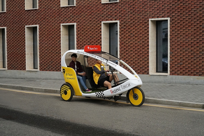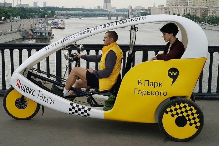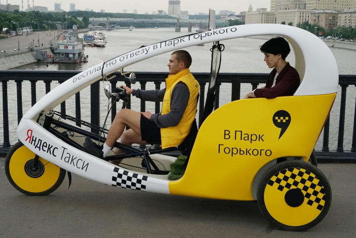 Крупнейший в России онлайн-сервис для заказа такси "Яндекс.Такси" запустил бесплатный трансфер на велокэбах. Работать трехколесное такси с "шашечками" будет все лето, его маршрут проходит между Парком Горького и ближайшими станциями метро. Акция продлится до 12 сентября.