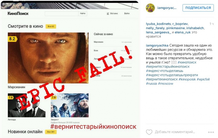 Яндекс продолжают сотрясать скандалы в связи с перезапуском КиноПоиска. Накануне интернет-компания уволила остатки старой команды главного российского сайта о кино. Как сообщил на своей странице в Facebook сооснователь КиноПоиска Виталий Таций, это были те разработчики, которые работали в проекте до покупки его Яндексом в 2013 году и которые не имеют отношения к провальному перезапуску портала.