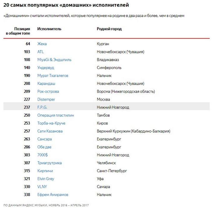 Так, самый популярный из "домашних" музыкантов, курганский автор-исполнитель Жека, который в общем топе только на 64-м месте. Следующий по популярности – рэпер ATL – на 103-м месте.