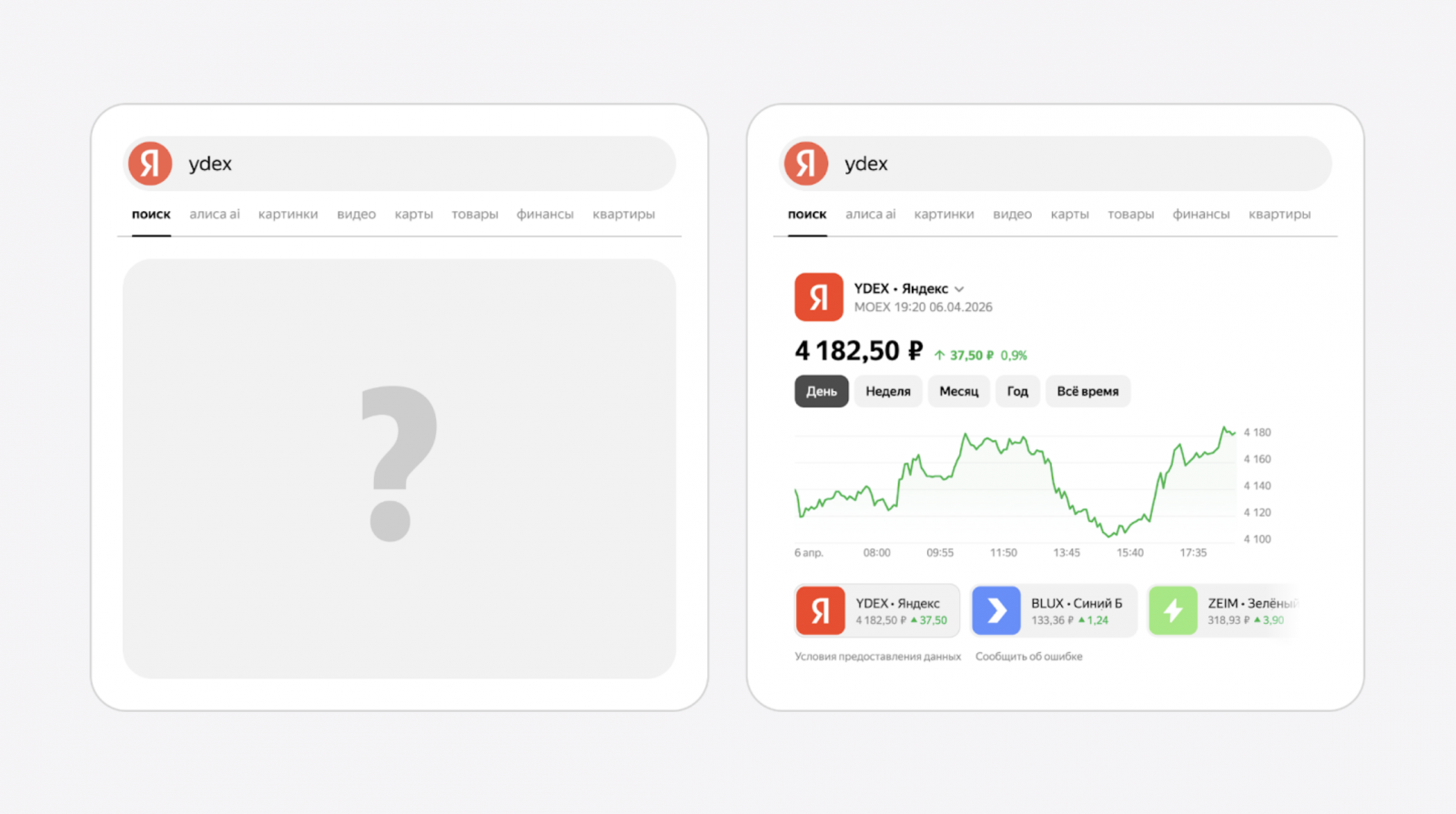Ранее «Поиск» ориентировался преимущественно на поведенческие сигналы, такие как кликабельность блоков. Новый ИИ-блендер дополнительно учитывает релевантность ответа, повышая точность выдачи: например, по запросам, связанным с котировками, система приоритизирует финансовые данные, исключая менее значимые элементы.