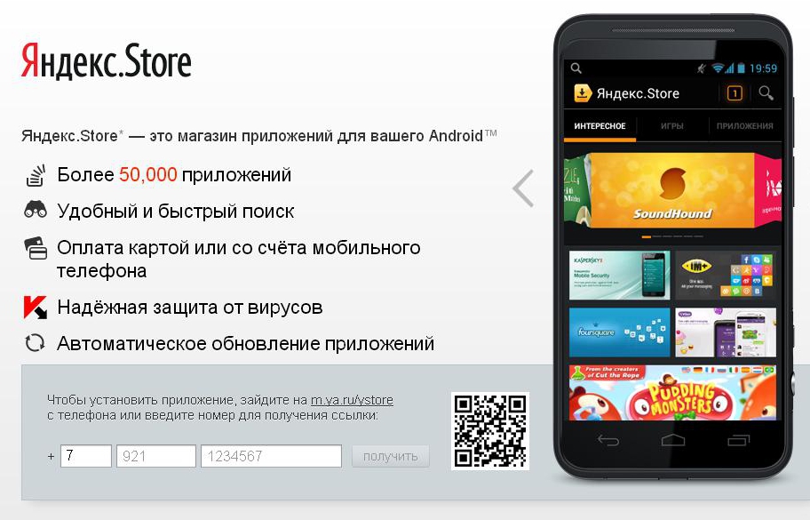 Российский IT-гигант «Яндекс» запустил магазин приложений для устройств на платформе Android под названием «Яндекс.Store». Как сегодня сообщили представители интернет-компании, сервис предлагает пользователям более 50 тыс программ и удобный поиск по ним. Посетители магазина могут оплачивать покупки банковской картой, а абоненты МегаФона, Билайна и МТС — ещё и со счета своего мобильного.