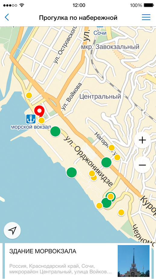 Все интересные места можно увидеть и списком, и на карте. Маршрут движения приложение не навязывает: человек сам решает, что посмотреть сначала и что потом. Кроме того, в приложении доступна необычная опция – если пользователь увидит незнакомый объект, он может сфотографировать его и узнать, что это.