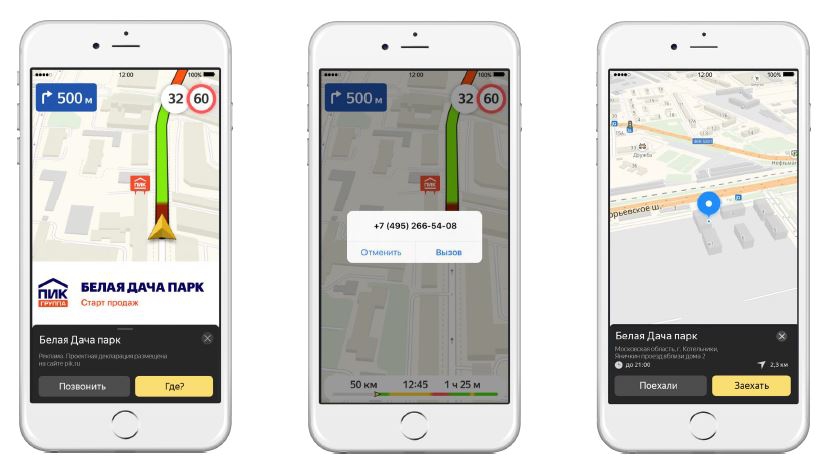 Кампания была запущена на виртуальных билбордах в Навигаторе — рекламных метках с логотипом организации, которые отображаются на карте во время движения по маршруту. Данный формат появился летом прошлого года, и Группа ПИК протестировала его одной из первых.