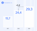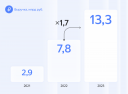 Потребление сервисов платформы данных выросло за год в 1,7 раза, а количество клиентов, использующих эти сервисы, — в 1,2 раза. Потребление контейнерной разработки в облаке увеличилось в 2,1 раза, сервисов безопасности — в 2,5 раза, сервисов машинного обучения — в 1,6 раза.