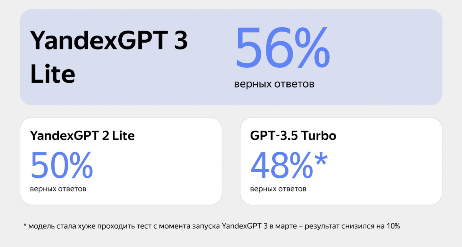 Напомним, «Яндекс» представил линейку нейросетей YandexGPT 3 в марте этого года. Первой языковой моделью в ней стала YandexGPT 3 Pro.