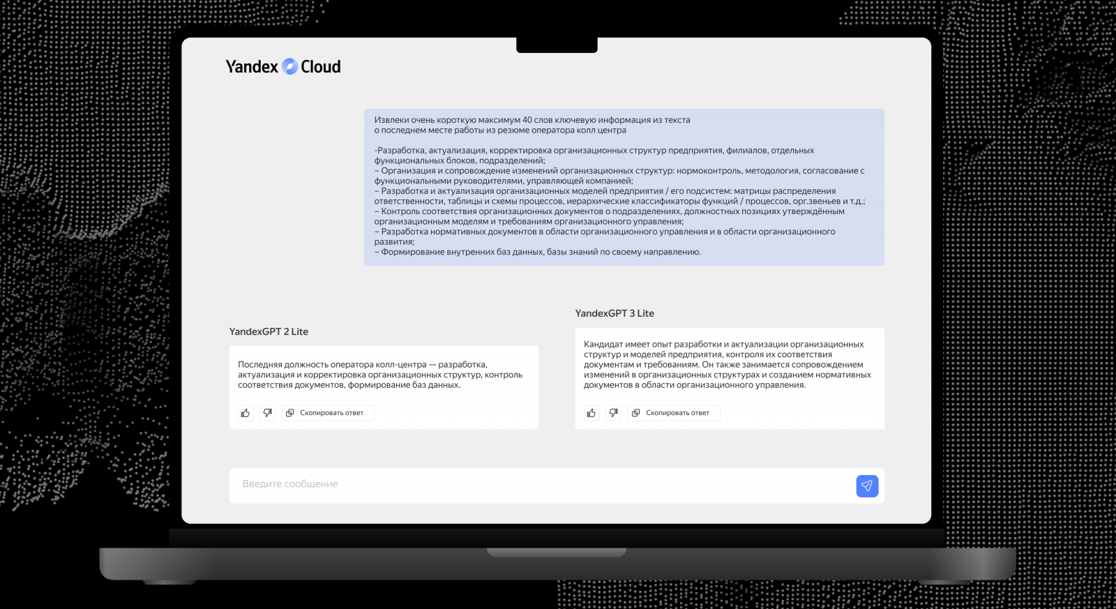 «С помощью модели YandexGPT 3 Lite можно оптимизировать такие задачи, как консультация клиентов в чате и по телефону, подготовка ответов для службы поддержки, создание маркетинговых материалов или дайджеста рабочих встреч. Крупные компании со сложными бизнес-процессами и большим потоком информации могут применять её для анализа данных, необходимых для принятия решений», — пояснили в компании.
