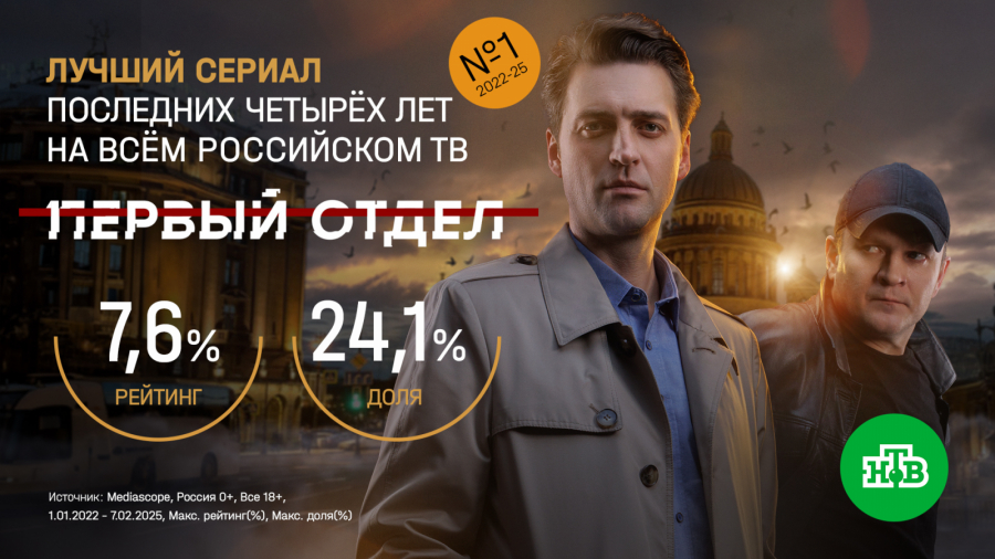 Согласно данным Mediascope премьерные серии четвертого сезона остросюжетного детектива «Первый отдел» с рейтингом 7,6% (доля 24,1%) сделали сериал лучшим на всем российском телевидении за последние четыре года среди зрителей старше 18 лет. Напомним, что лучшими сериалами прошлых лет становились: в 2022 году «Невский. Охота на Архитектора» (НТВ) с рейтингом 7,2%, в 2023 году «Склифосовский 10» («Россия 1») с рейтингом 7,0%, в 2024 году вновь «Невский. Близкий враг» с рейтингом 6,3%.
