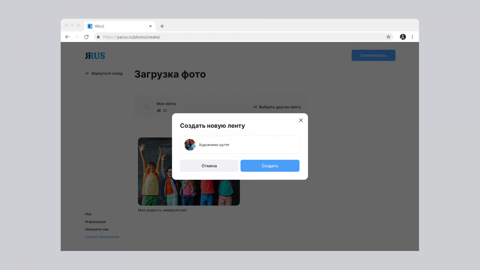 Возможность сразу создать ленту, куда добавляются публикации и фотопосты.
