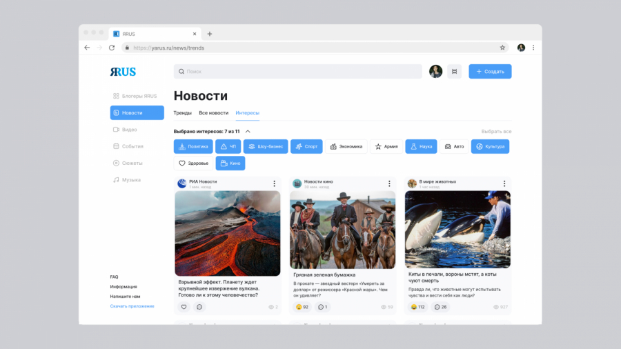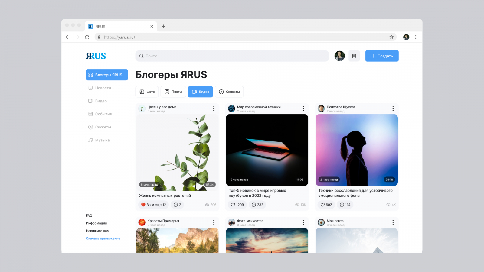 В основное меню добавили категории и фильтры. Блогеров ЯRUS можно фильтровать по интересам: посты, фото, видео и сюжеты.
