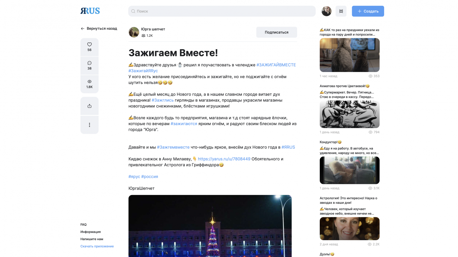 ЯRUS — новая социальная сеть, поэтому после регистрации многие начинают интересоваться новостями и полезными советами по работе с приложением. Корпоративный блог «Инструкции» рассказывает про обновления, уникальные функции и наглядно объясняет, как ими пользоваться. Самым популярным в ноябре стал пост про создание персональных «ярусов», который посмотрели почти 55 тыс. раз.