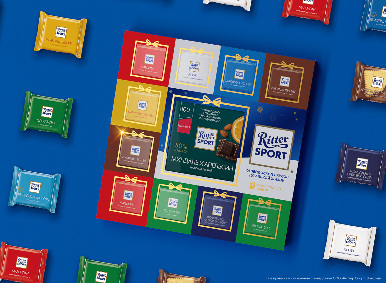 В 2019 году в компании Alfred Ritter GmbH & Co приняли решение стать ближе к нашему потребителю и работать над визуальной частью вместе с российскими коллегами. Наше агентство, обладающее десятилетним опытом успешного решения подобных задач, выиграло тендер и разработало подарочные наборы Ritter Sport.