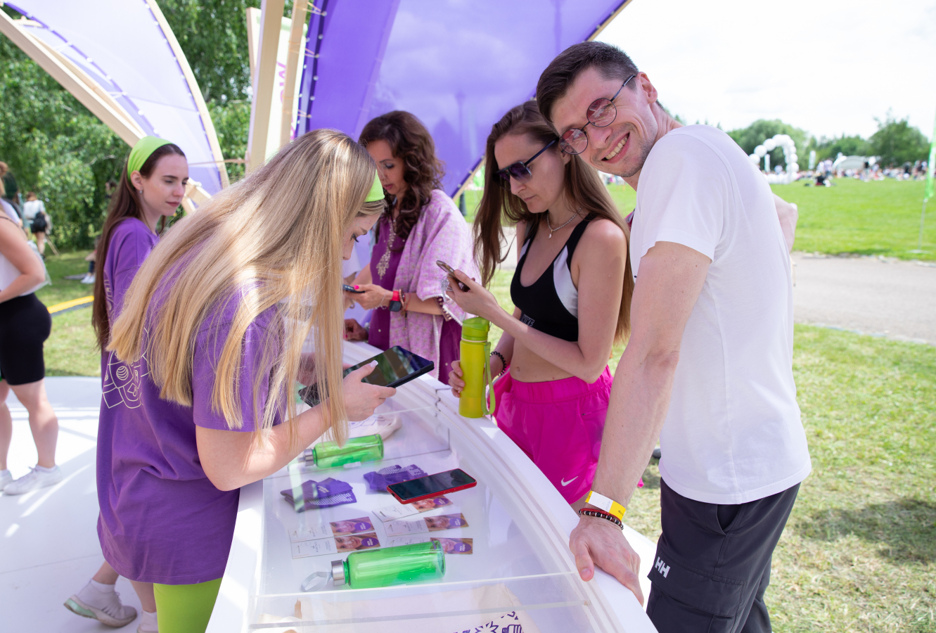 Каждого гостя ожидал свой опыт взаимодействия с брендом: от подарков до увлекательных активностей, где каждый элемент был направлен на поддержку философии йоги и повышение узнаваемости «Мегамаркета». Установка приложения награждалась приятными сюрпризами — смузи, аксессуарами для йоги, стильными шопперами, бутылками для воды или флеш-тату.