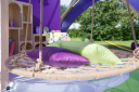 - Лаунж-зона для отдыха: здесь можно было расположиться на бинбэгах, покачаться на качелях или полежать на спортивных ковриках. В общем, тотальная атмосфера расслабления и чилла.