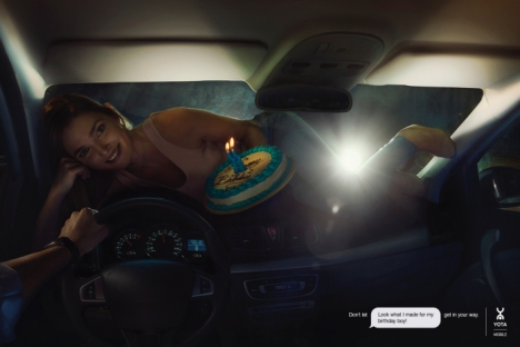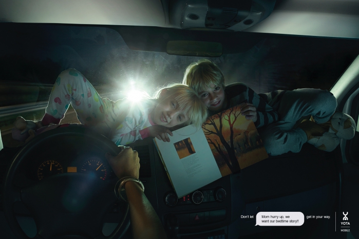 Мобильный оператор Yota Mobile и агентство Y&R Moscow создали серию принтов, направленных против отвлекающихся водителей. Сообщения от детей, любимой девушки и коллеги могут привести к потере контроля над дорогой и трагичным последствиям, напоминают креаторы.