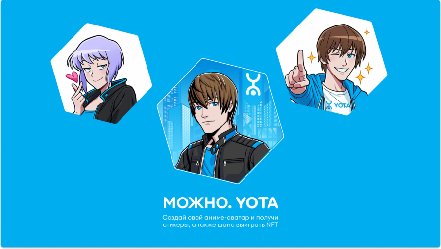 Мобильный оператор Yota, соцсеть «ВКонтакте» и медийное агентство Media Instinct Group запустили проект «Можно.NFT». До 8 октября пользователи «ВКонтакте» могут создать кастомный аниме-аватар и выиграть NFT-токен с ним. За шесть недель проекта среди абонентов всех операторов будет разыграно 156 тыс. уникальных NFT-токенов основной и лимитированной коллекции «Можно.Yota».