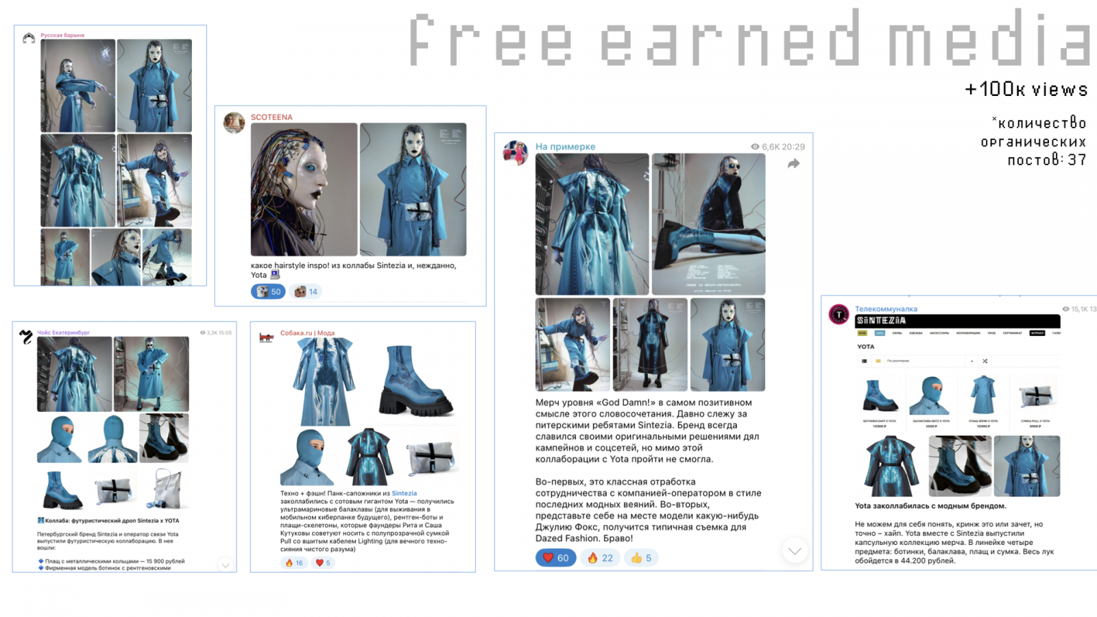 Инфоповод получился настолько ярким, что вышел за пределы соцсетей брендов и посевных постов: бренды получили 37 органических публикаций в поп-культурных и тематических фэшн-пабликах.