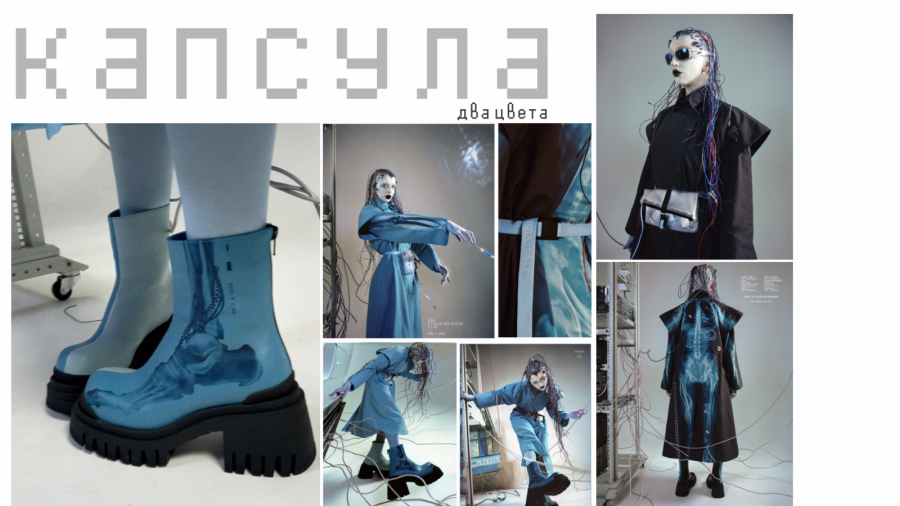 Изначально идея состояла в том, чтобы создать только арт-обувь — один суперайтем для розыгрыша в рамках спецпроекта. Например, туфли с платформой из симок или с эпоксидным каблуком. Но в итоге команда остановилась на идее целой капсулы одежды из ботинок, плаща, сумки и балаклавы.
