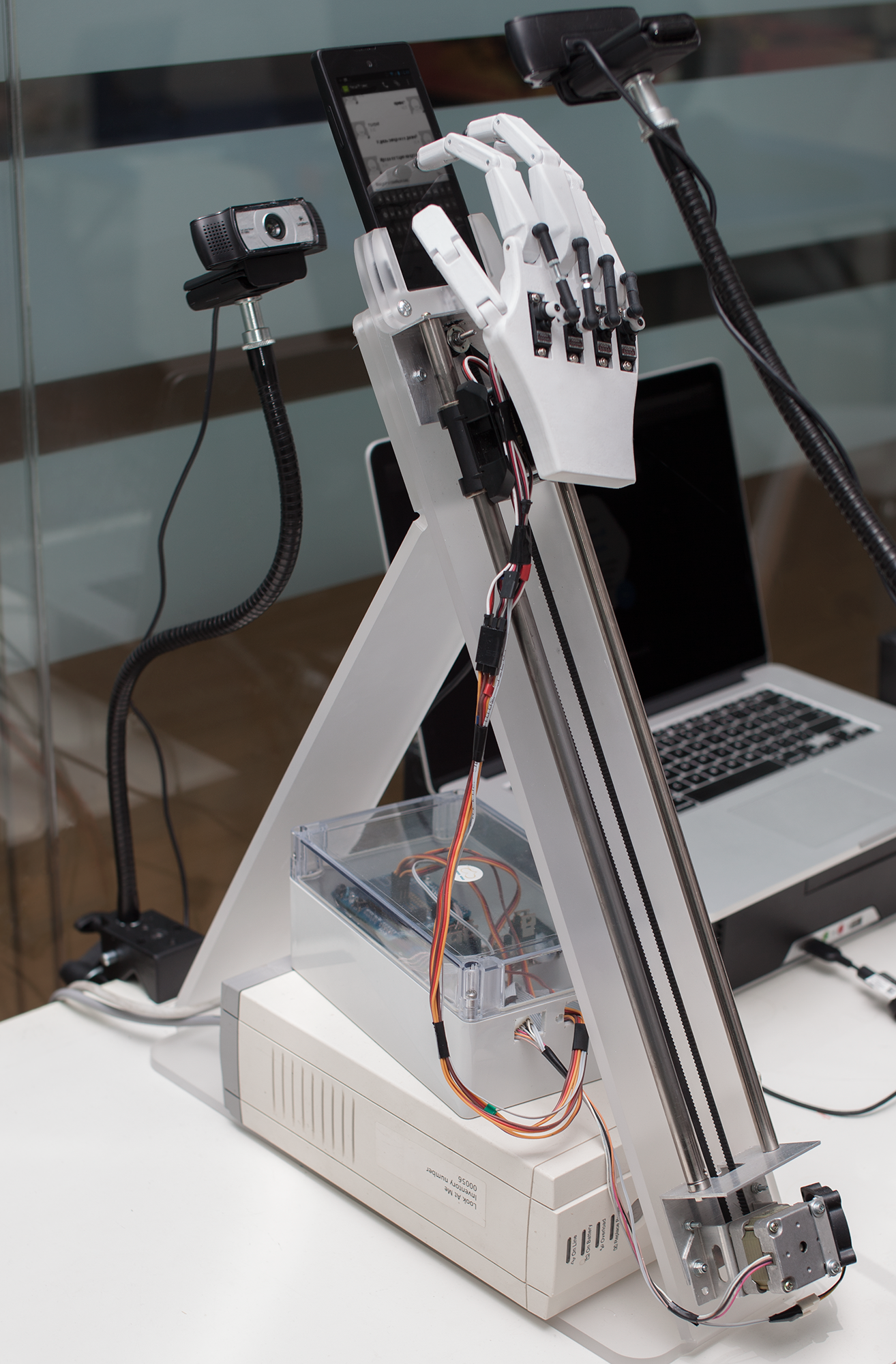 Рука-манипулятор была спроектирована и напечатана на 3D принтере, после чего специально запрограммирована для проведения экспериментов командой Hello Computers по заказу Look At Media.