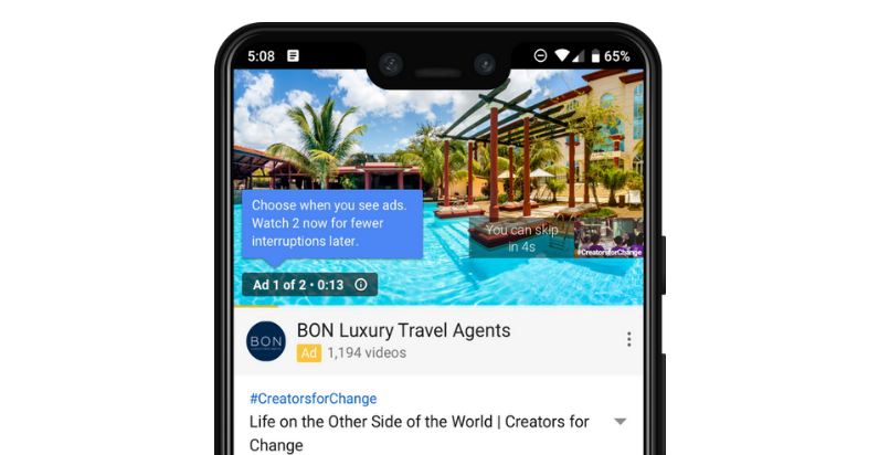 Согласно исследованию, пользователи реагируют не только на длину рекламы, но и на частоту прерываний, особенно во время длительной сессии. Чем меньше рекламных пауз, тем лучше пользовательские метрики, включая процент досмотров контента и частоту просмотров рекламных роликов. В связи с этим YouTube запустил «ad pods» — два рекламных ролика, которые идут один за другим. Если пользователь посмотрит их, то, соответственно, потом увидит меньше рекламы. Однако у него есть возможность пропустить рекламу и перейти непосредственно к контенту. В этом случае число пауз останется прежним.