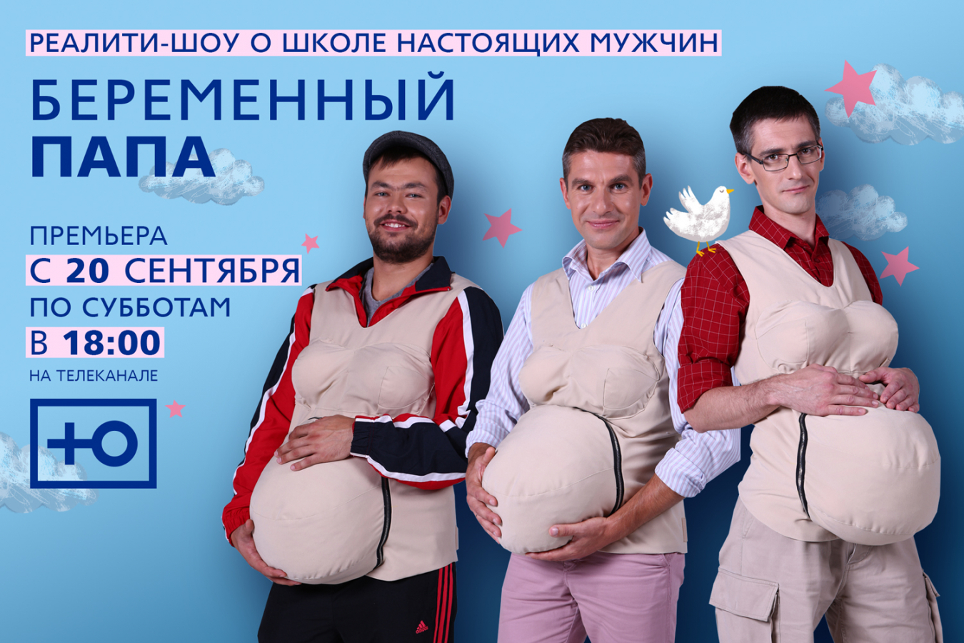 В рамках проекта героям нужно было провести некоторое время в накладных животах, чтобы лучше понять своих жен в положении. Эта идея легла в основу новой наружной кампании канала «Ю».