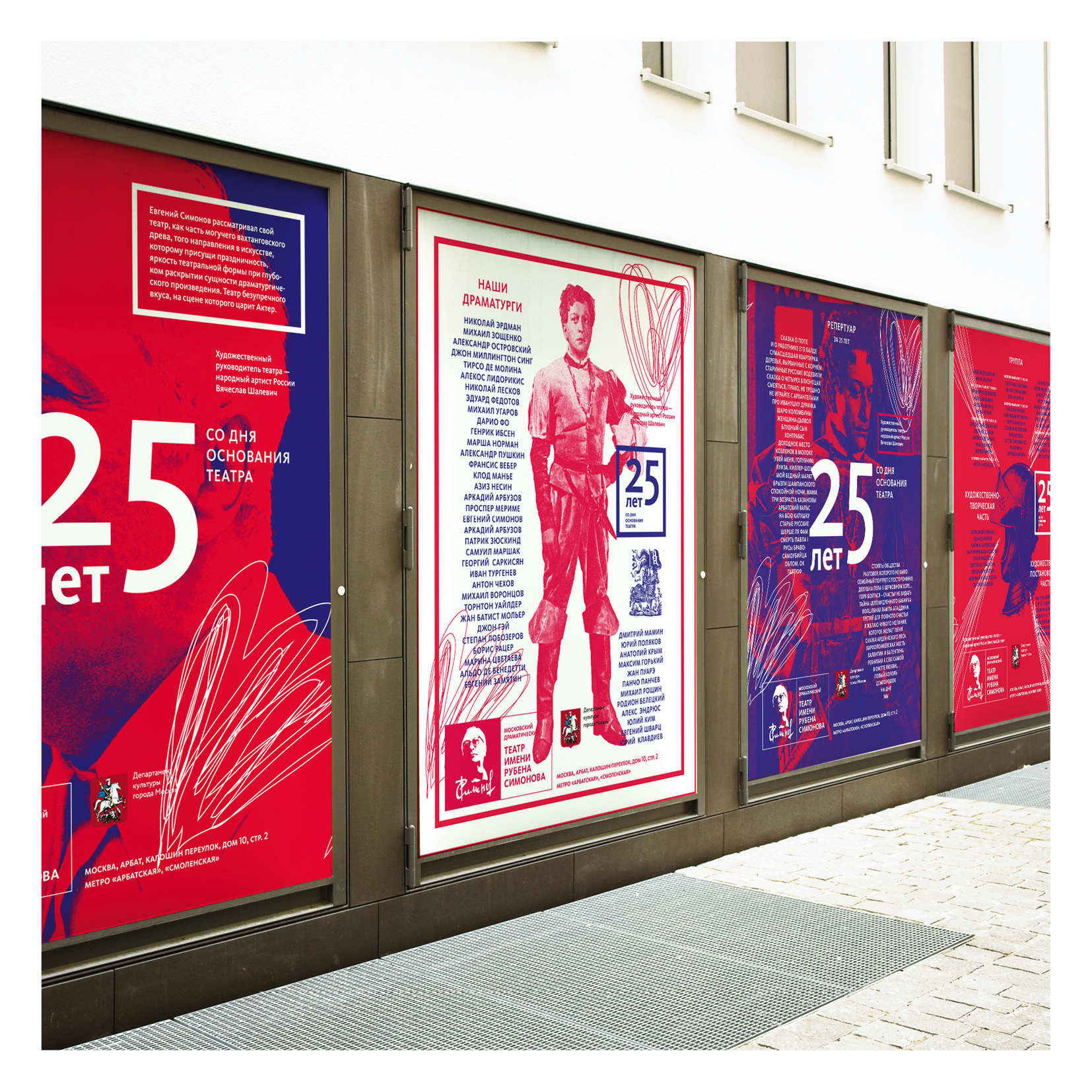 Дизайнеры Анна Богоносова и Даниил Малкин создали айдентику театра Рубена Симонова в честь его 25- летия. «Юбилейная айдентика стала новым фирменным стилем» - рассказали авторы проекта.
