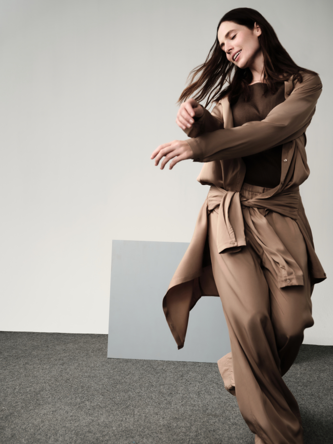 В компании называют одежду инструментом для исследования собственной многогранности, который помогает ежедневно примерять и принимать все свои «роли» и при этом оставаться собой. Разделяя это мнение, Юлия Снигирь не гонится за эпатажем и превращает образы в стиле кежуал в элегантные и притягивающие взгляды.