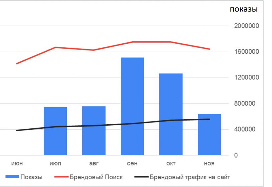 Ранее мы писали о том, что результаты видеорекламы можно увидеть на значительных охватах целевой аудитории — имеющиеся у нас кейсы подтверждают это. Дело в том, что при достаточных охватах видеореклама способствует появлению нового спроса на продукты или услуги, что выражается в т. н. «поисковых лифтах» — росте брендовых поисковых запросов в интернете.